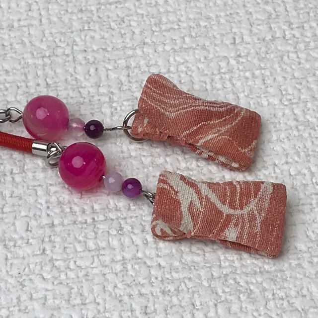 〇品名 エプロンクリップ (がま口付き) 縮緬 墨流し・珊瑚色